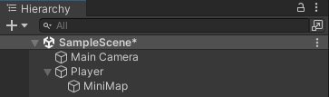 Чтобы мы могли записывать информацию в нашу созданную текстуру, нам необходимо создать камеру. Для этого с помощью окна Hierarchy создадим новую камеру (ПКМ - Camera), и вложим её внутрь нашего игрового персонажа. Объект новой созданной камеры назовём MiniMap.