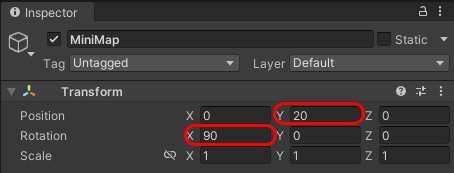 Внутри нашей рамки, то-есть объекта Border создадим объект UI - Raw Image, в которой и будет транслироваться мини карта. Назовём данный объект, например, Map. Настроим его компоненты: