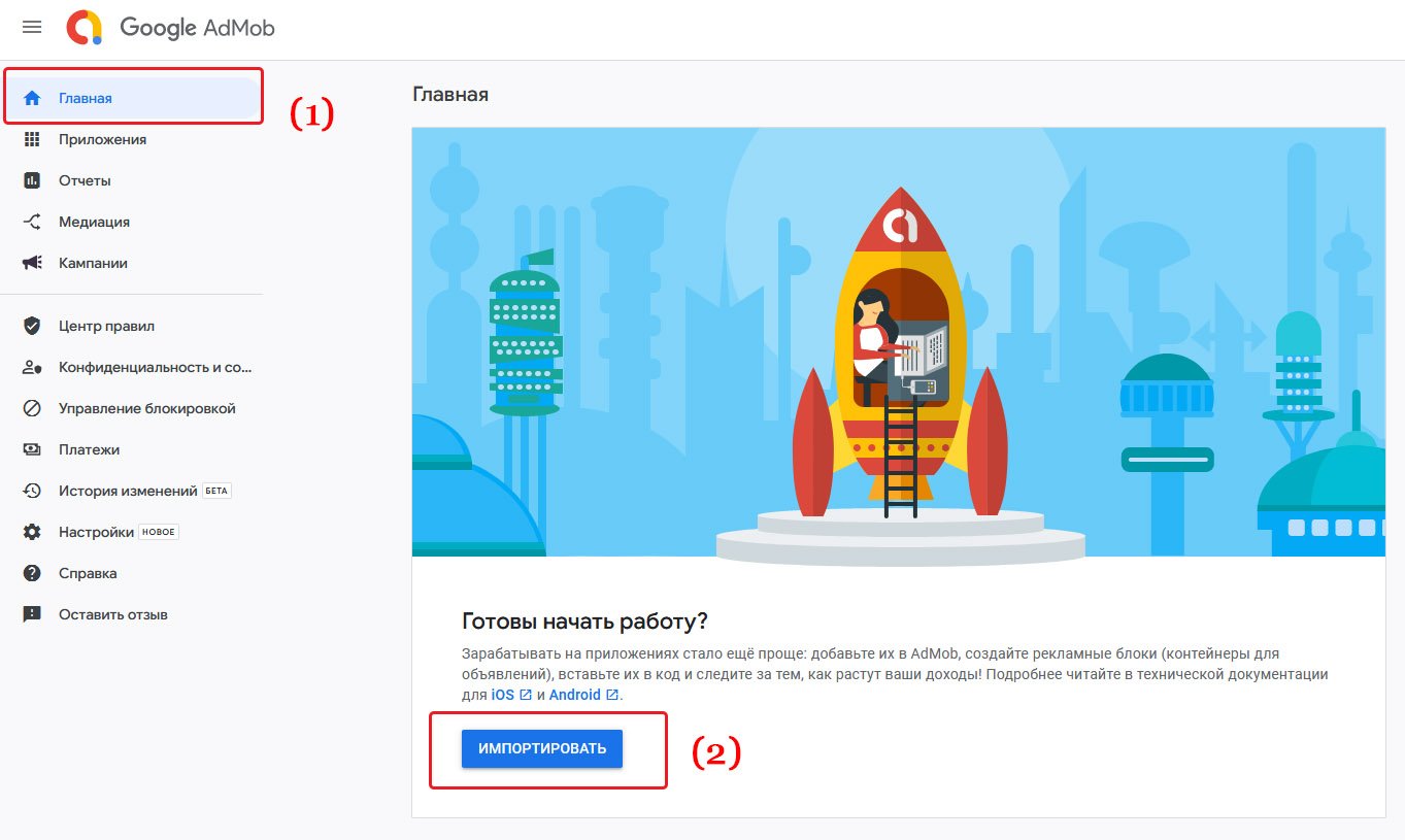 Первым делом нам необходимо войти в личный кабинет AdMob, перейдя по ссылке https://admob.google.com/home/. Если аккаунта нет, зарегистрируйте его.