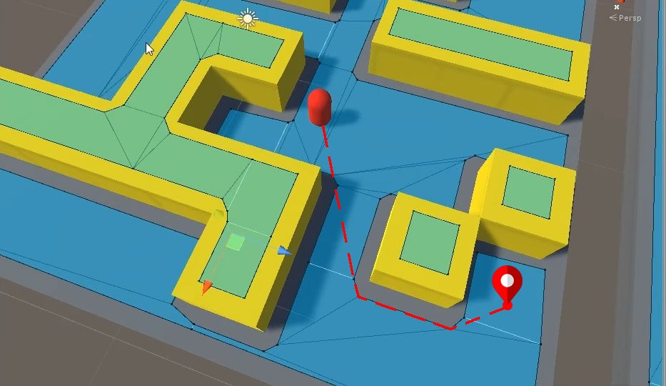 Основная задача выполнена. Навмеш настроен и готов к использованию. Теперь создадим простейший скрипт, который сразу при старте игры будет двигать нашего персонажа в определённое место, а мы в свою очередь увидим, как персонаж будет двигаться к указанной точке, огибая все препятствия на своём пути.