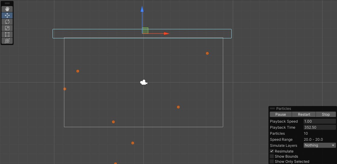 Ну и для начала создадим объект партиклов с помощью окна Hierarchy (Effect - Particle System). На игровой сцене получим следующее.
