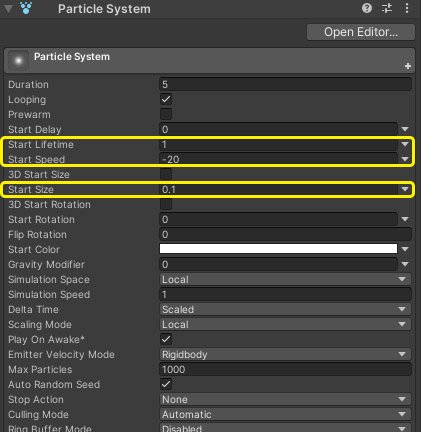 Ну и в третьих, наши частицы очень долго живут при такой скорости полёта. Поэтому в поле Start Lifetime указываем значение 1.