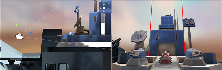 - Cropping: When the film gate exceeds the resolution gate after fitting, the Game view renders as much of the camera image as fits within its aspect ratio, and cuts off the rest.